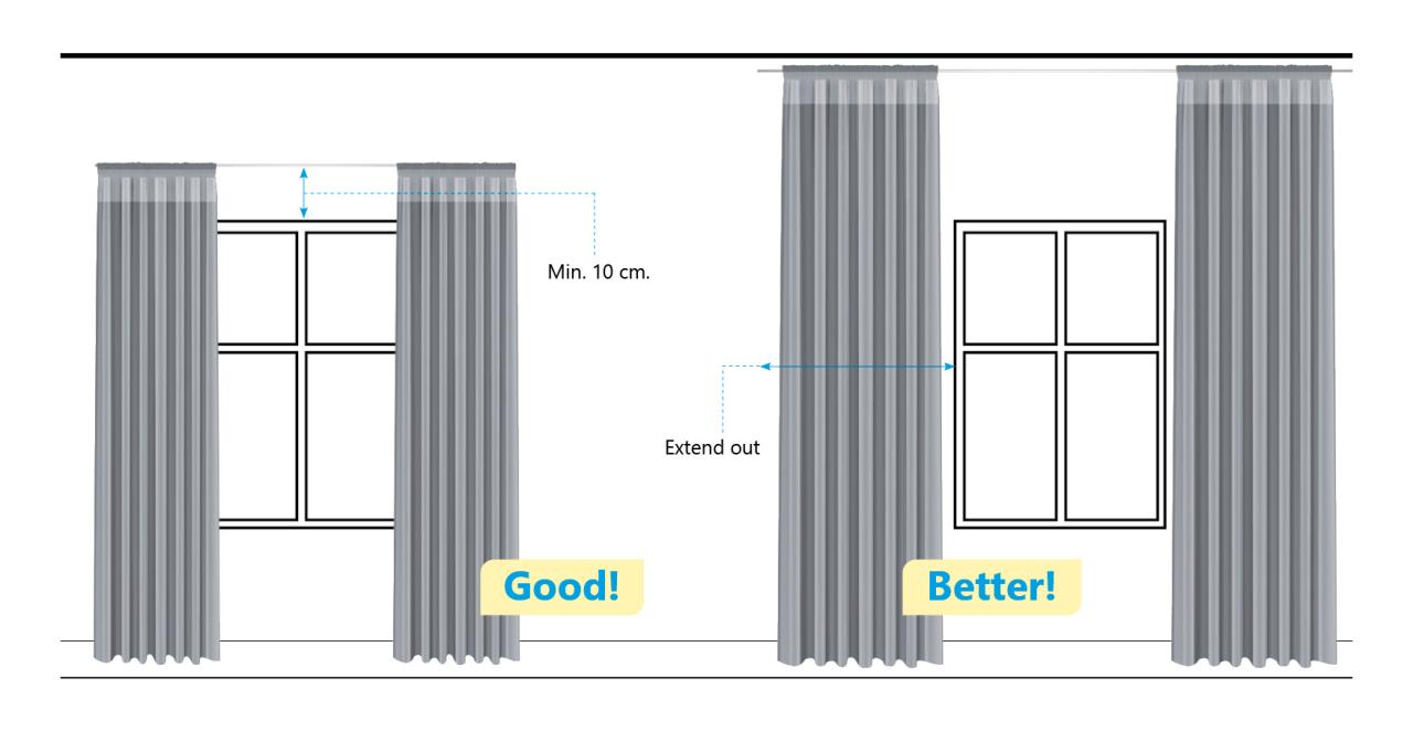 ✔ Skinnen skal være min. 20-50 cm længere end vinduet