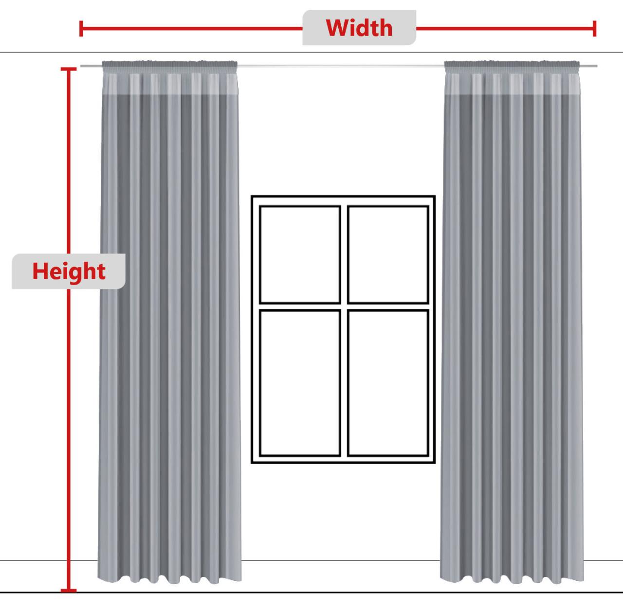 Højden på gardinet målet fra underkanten af stangen/skinnen og ned til gulv (evt. vindueskarm). Det er vigtigt at du måler højden fra begge sider af stangen og midten. Du skal oplyse det laveste mål til os.