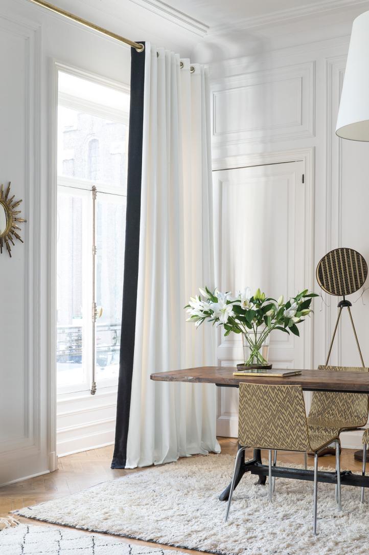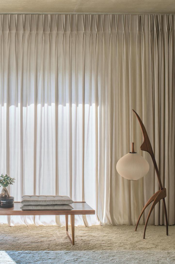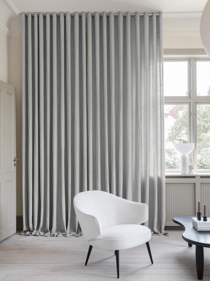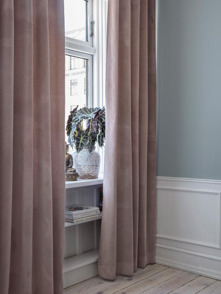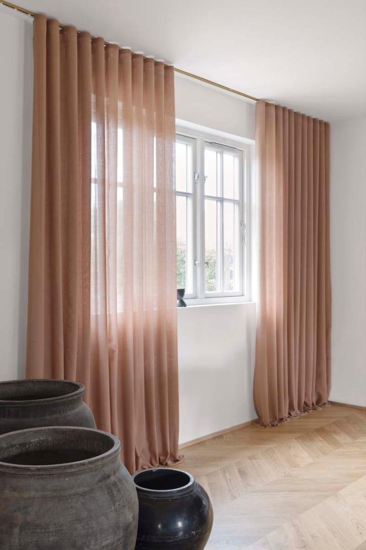 Gardiner der svæver 2 cm over gulvet giver en rolig og klassisk atmosfære.