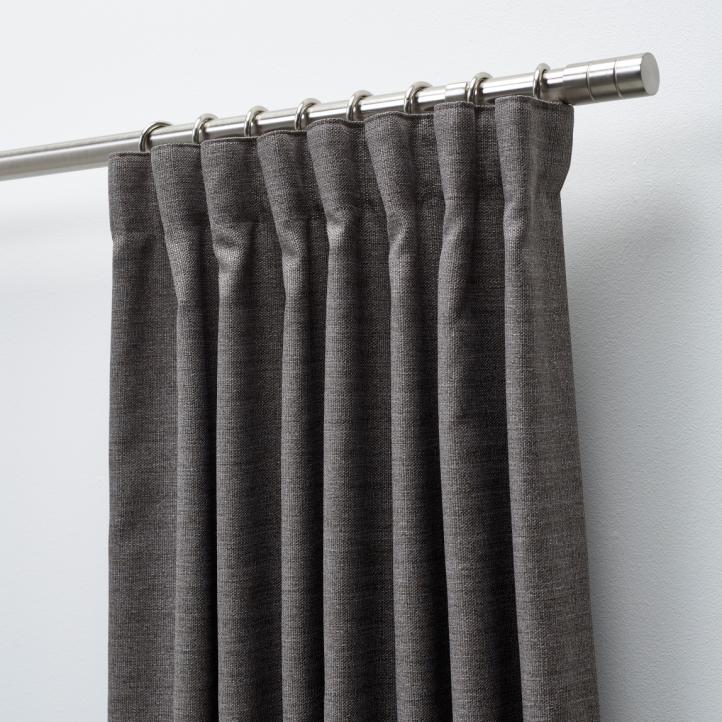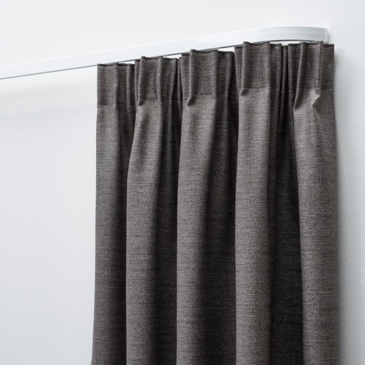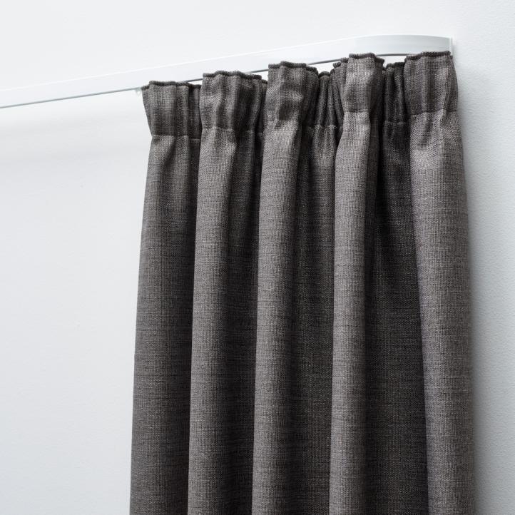 Faste læg giver et luksuriøst og elegant udtryk.Gardinet er sammensyet med læg og har kroge indsyet i stoffet, så de hænger flot og ensartet i folde. Vælg mellem 1,2 eller 3 læg. 3-læg former en lille vifte øverst på gardinet. Krogene kan fæstes i forskellige højder så man kan vælge at gardinstangen bliver skjult.