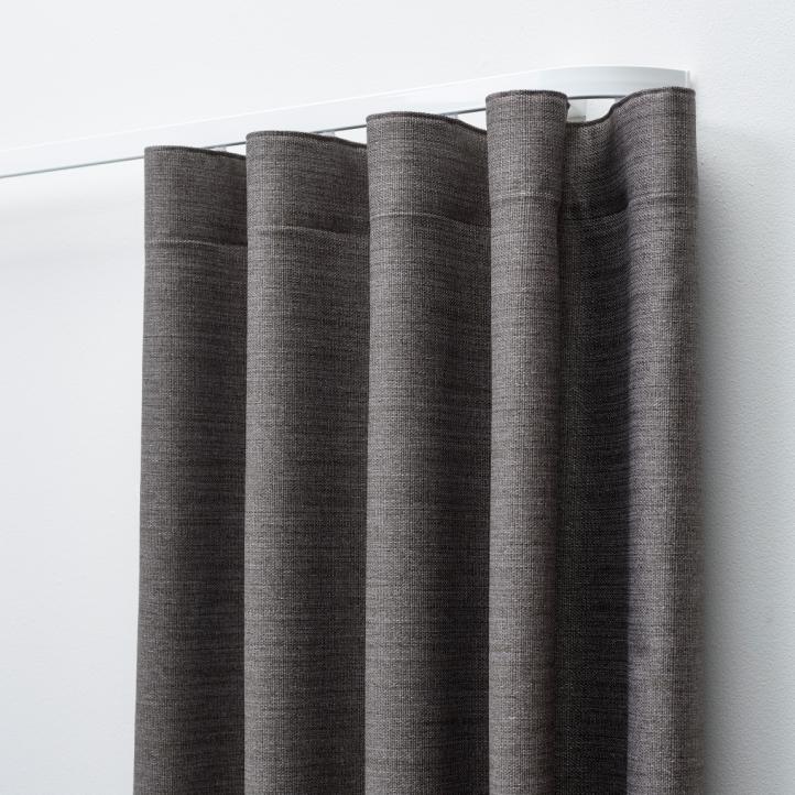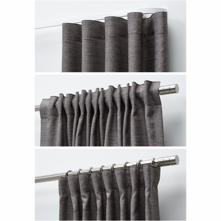 Det transparente multibånd giver flere muligheder til at montere gardinerne. Du kan bruge gardinhægter så du får store wavefolder, anvente løbegang til gardinstang eller montere dem med fingerkroge (medfølger ikke).