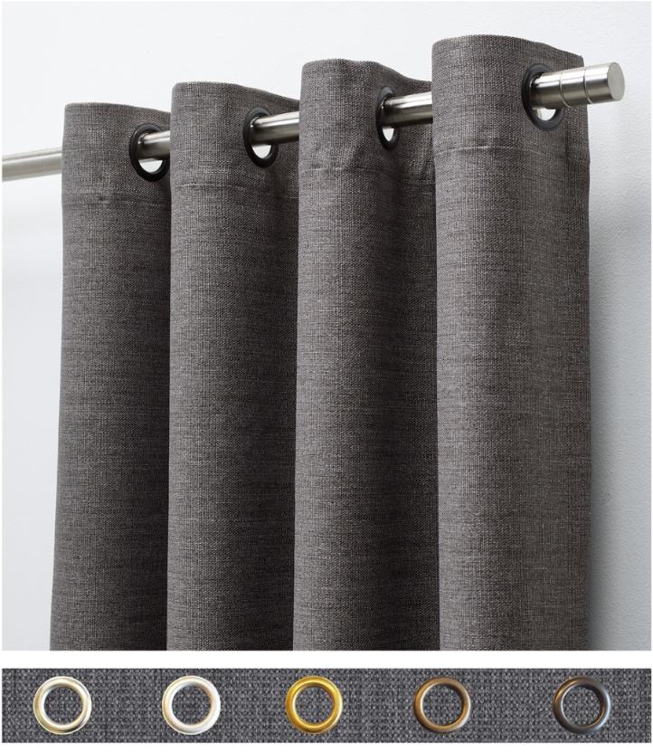 Gardiner med kouserringe skaber et moderne og råt look. Kouserringe sikrer, at gardinerne hænger i smukke og ensartede folder. Du kan vælge mellem flere farver kouserringe; blank stål, mat stål, messing, guld elle sort.